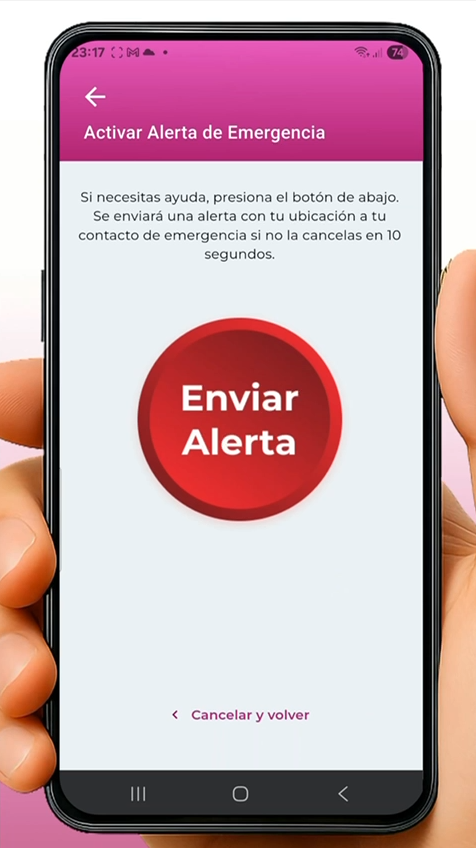 - Utiliza el botón de emergencia cuando lo requieras, enviando una alerta instantánea a quienes puedan asistirte.